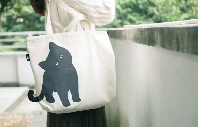 去年年初,他做了一款黑猫执事包的设计。这是一款采用天然棉胚布的帆布包,正面的图案是一只黑色的猫,但他巧妙地突破了平面的限制,一款在帆布包一侧“伸出”了尾巴,另一款则“突出”了粉色的蛋蛋,设计一下有了立体感。