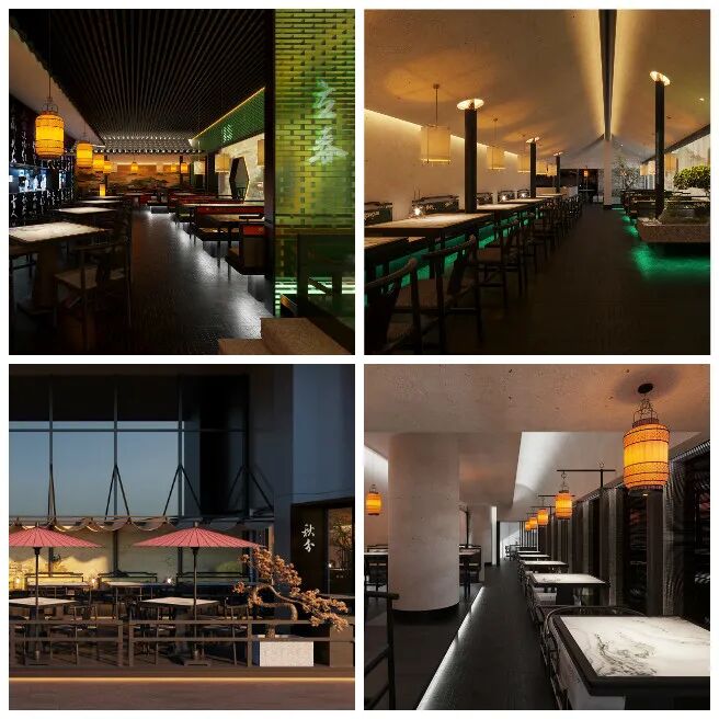 “新场地还没有来得及去拍,但看效果图也行,因为落地还原度能有90%+。”说到新近的这个案子,她很有兴致地掏出手机里的效果图,一张张地解释给我听,“包括这些灯跟饰品,都是定制完成的,所以项目落地的效果是一模一样。”